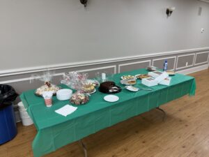 Our holiday party took place on Sunday, December 7th at the Creamery Hall in Califon, NJ, and was a great success with more than 40 members in attendance. Guests brought an impressive spread of dishes—from elk stew and sausage & peppers to sushi—along with a delicious assortment of desserts ranging from cookies to cakes and pies.